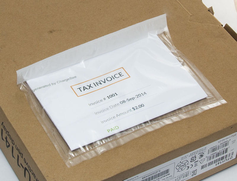 Självhäftande kurirkuvert ”packsedelskuvert” som gör det möjligt att bifoga följesedel, fakturor, garantikort och andra till packet. Tillverkade i transparent LDPE-folie. Kuvertets baksida är täckt i sin helhet med ett högklibbigt lim som permanent fäster kuvertet på paketen. Kuvert med enkel stängning - stängning från baksidan. Det går att ta ut dokument endast genom att bryta kuvertet.