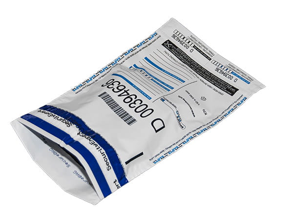 Tillverkad av coextruderad folie beständig mot sprickning, dubbla svetsfogar på sidokanter, 2 kvitteringsdelar på toppen av kuvertet. Unik numrering av kuvert.